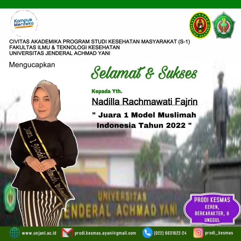 .Selamat dan Sukses Kepada Nadilla Rachmawati Fajrin sebagai “Juara 1 Model Muslimah Indonesia Tahun 2022â€.Bukti bahwa mahasiswa Kesmas Keren, Berkarakter & Unggul.[...]