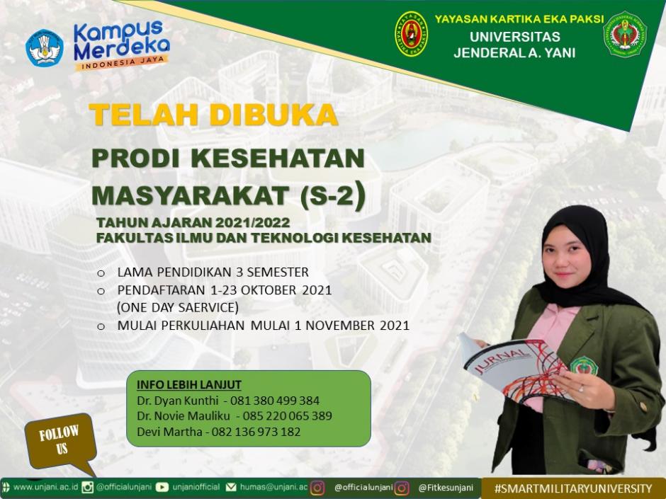 Telah dibuka Penerimaan Mahasiswa Baru Program Studi Magister Kesehatan Masyarakat S 2 Fakultas Ilmu & Teknologi Kesehatan Universitas Jenderal Achmad Yani [...]