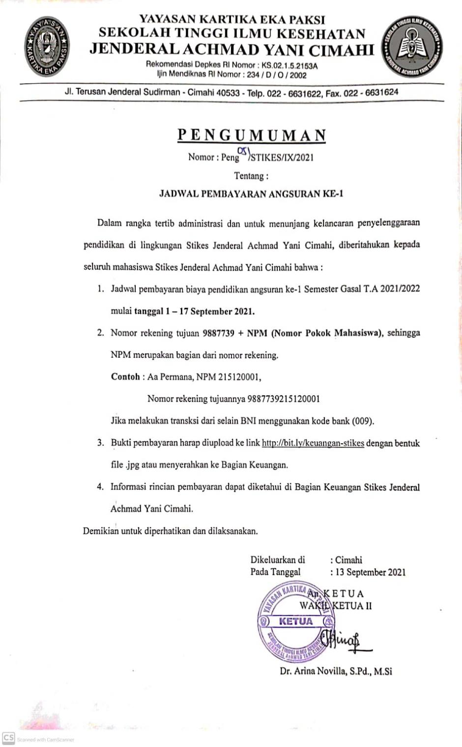 Jadwal Pembayaran Angsuran Ke-1 Semester Gasal T.A. 2021/2022, bisa dilihat dan didownload.