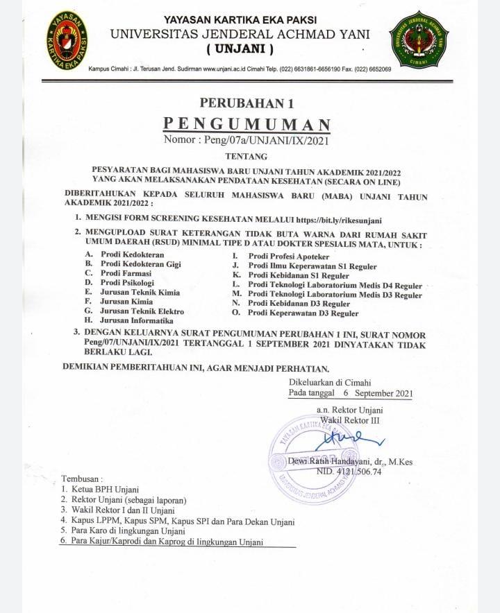 Pendataan Kesehatan Bagi Mahasiswa Baru Fakultas Ilmu & Teknologi Kesehatan (Stikes) / UNJANI, diisi sesuai panduan pengisian